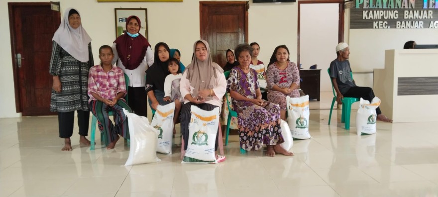 Dalam hal pembagian beras tersebut, di hadiri oleh Kepala Kampung, Aparatur, PSM, serta masyarakat.